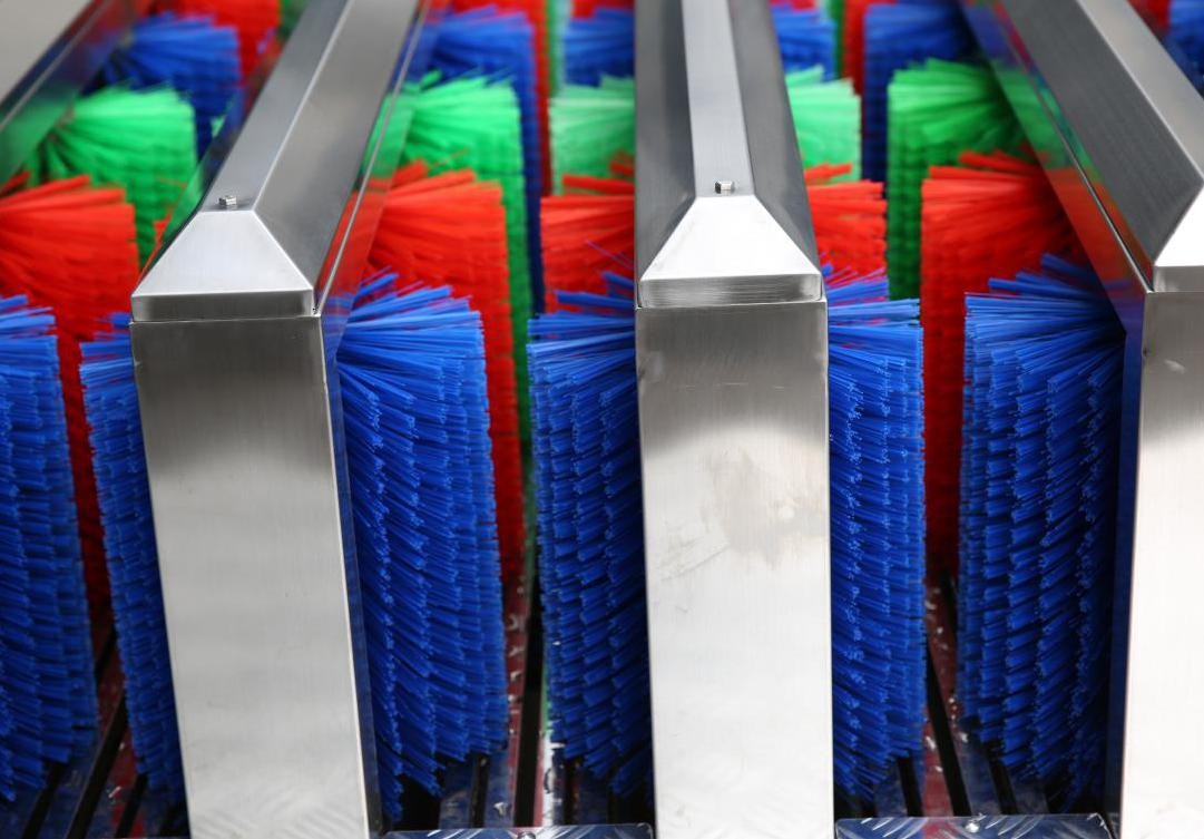 2、 電機(jī)驅(qū)動清洗臺上的 5 組刷子,高壓噴淋清水。